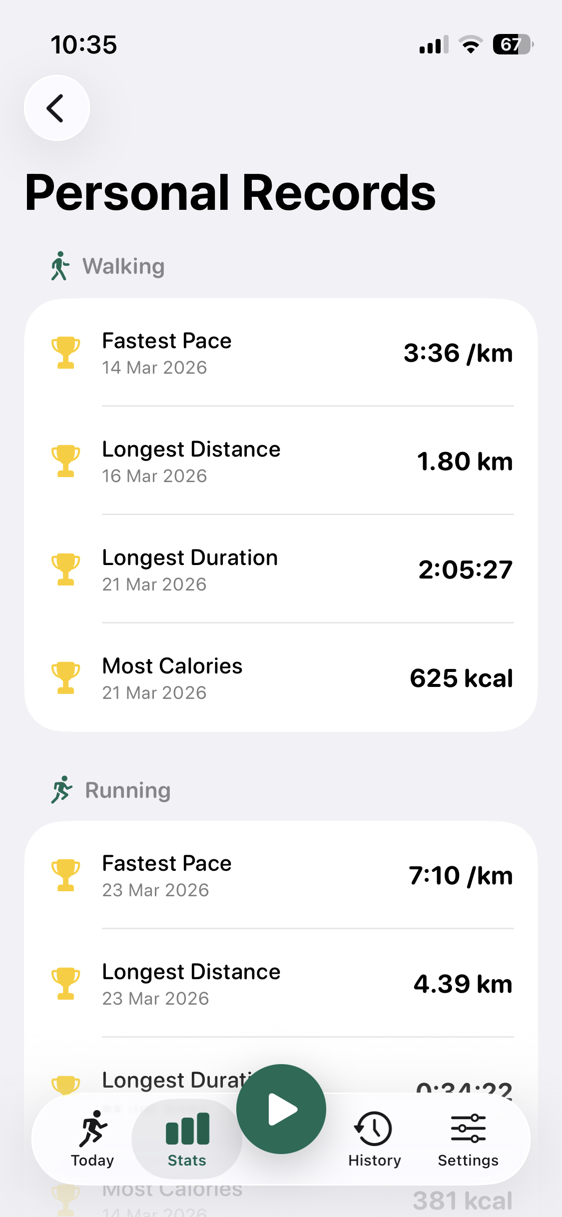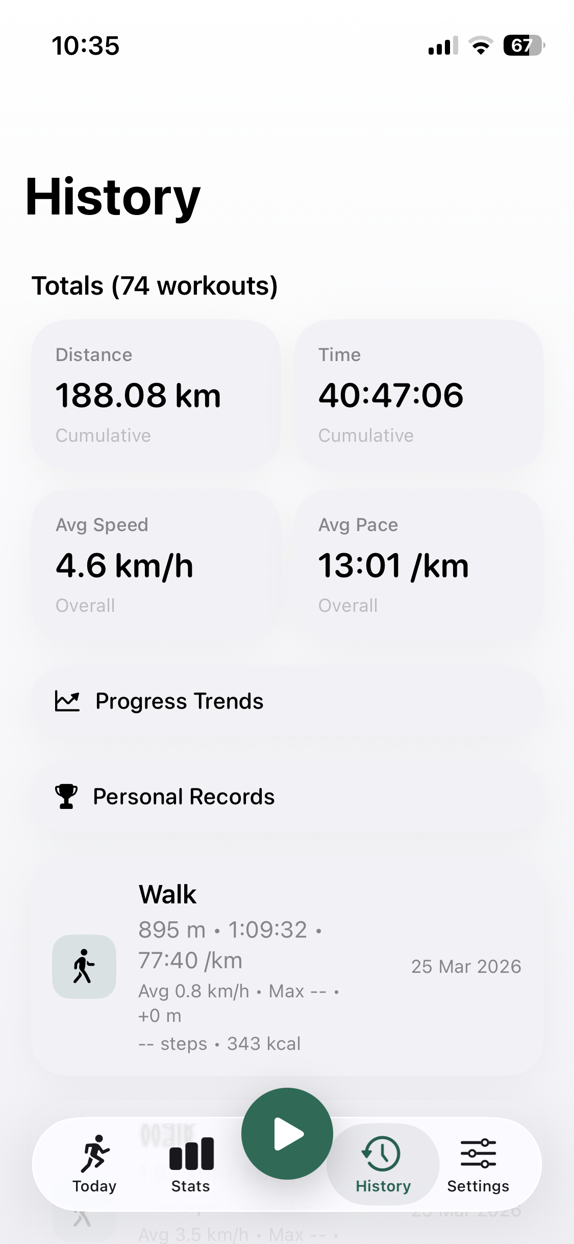 The simplest way to track your runs, rides, and walks. No clutter, no subscriptions, no nonsense — just you and the road ahead.